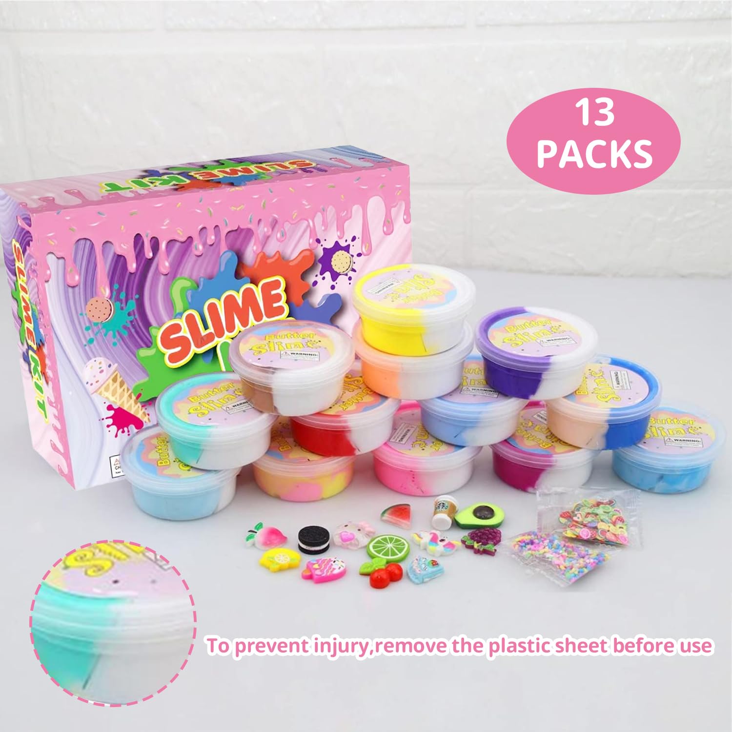 - 【Fluffy Slime with Amazing Texture and Scent】:This slime pack includes 13*60ml slimes with different two-colour mixed premade textures stretchy slime feel. Keep our young artists be busy and enjoy hours of fun,They are an excellent tool to relieve pressure.